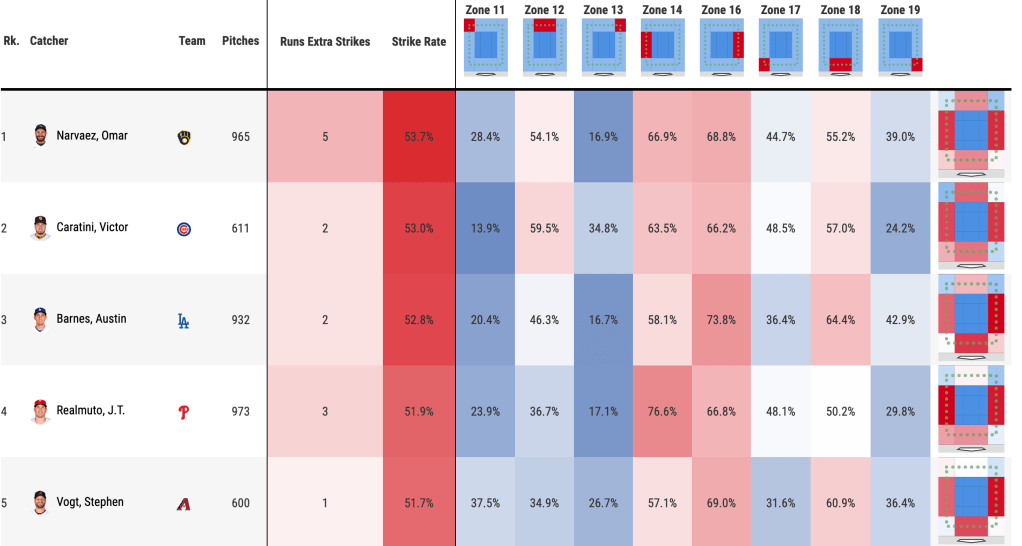 I will leave it up to the Diamondbacks front office and coaches to decide, whether Vogt’s marked improvement in framing is real or not. However, based on Statcast, in 2020 Vogt was the fifth best pitch framer in baseball, in terms of converting non-swings in the Shadow of the zone into called strikes.