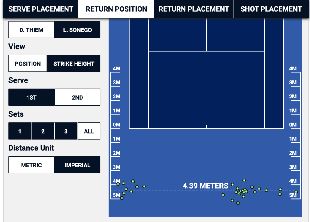 This is Dominic Thiem’s second serve return position in his third round match in the ATP Masters 1000 in Rome against Lorenzo Sonego: