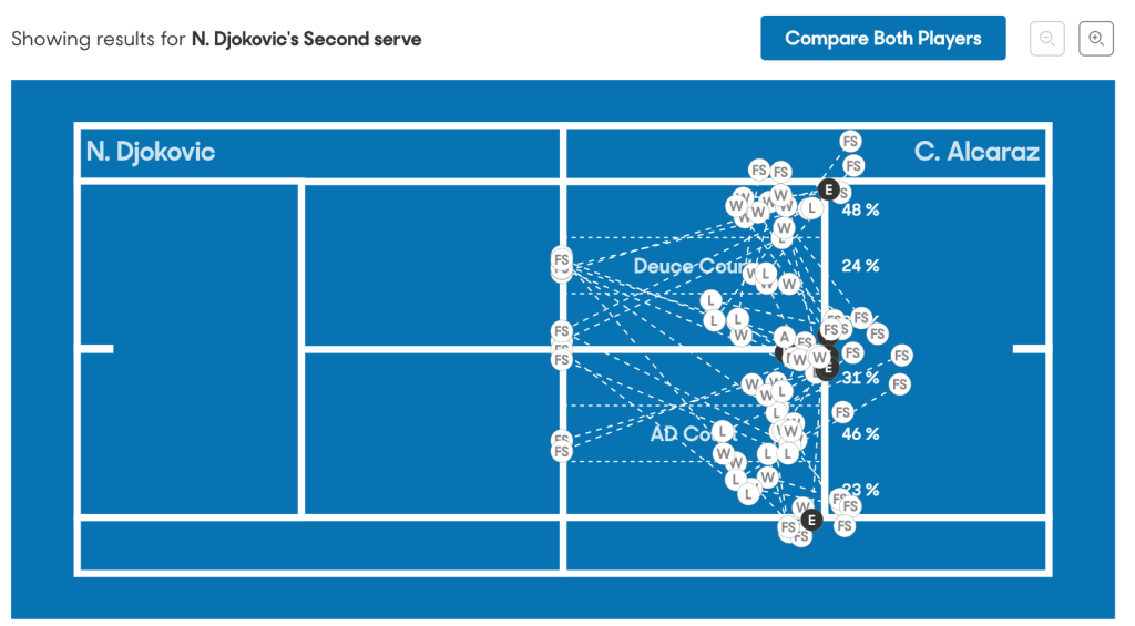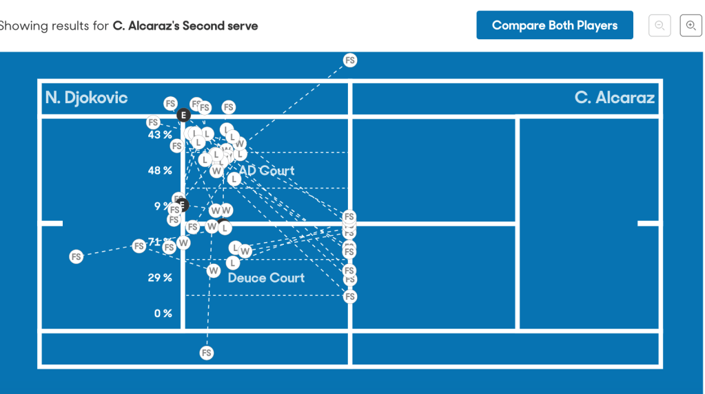 Here is where Novak Djokovic aimed his second serves against Alcaraz: